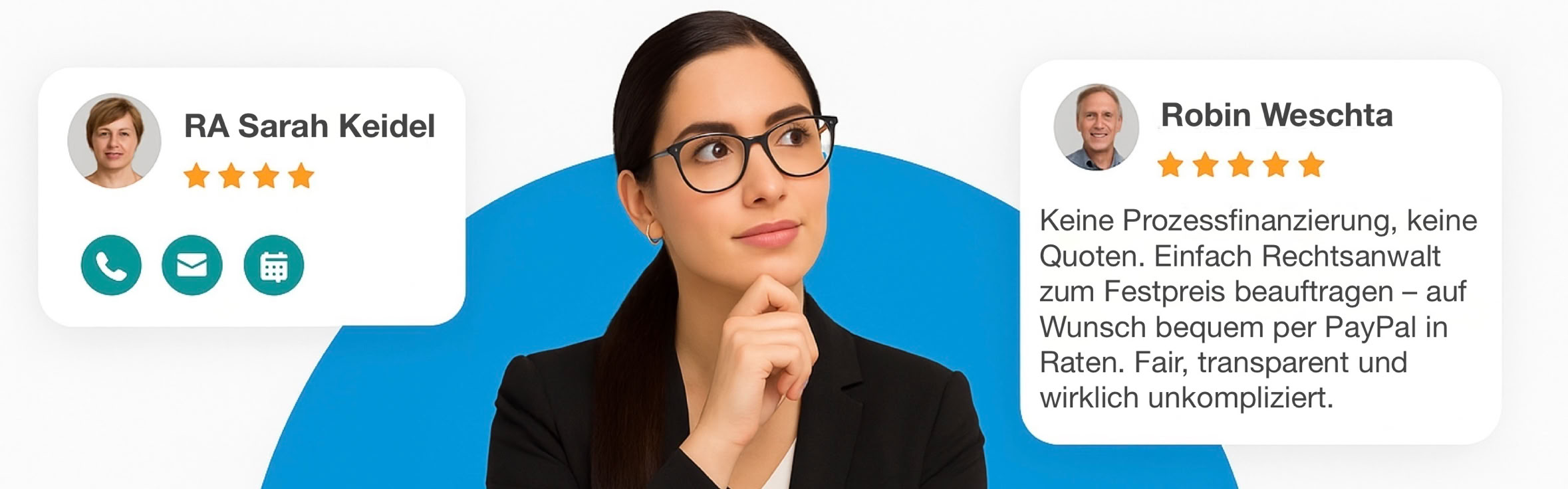 Anwalt beauftragen ohne Risiko, ohne Termin und mit echter Expertise. Jetzt einfach Rechtsproblem schildern & kostenlose Ersteinschätzung erhalten oder direkt Anwalt zum Festpreis beauftragen.